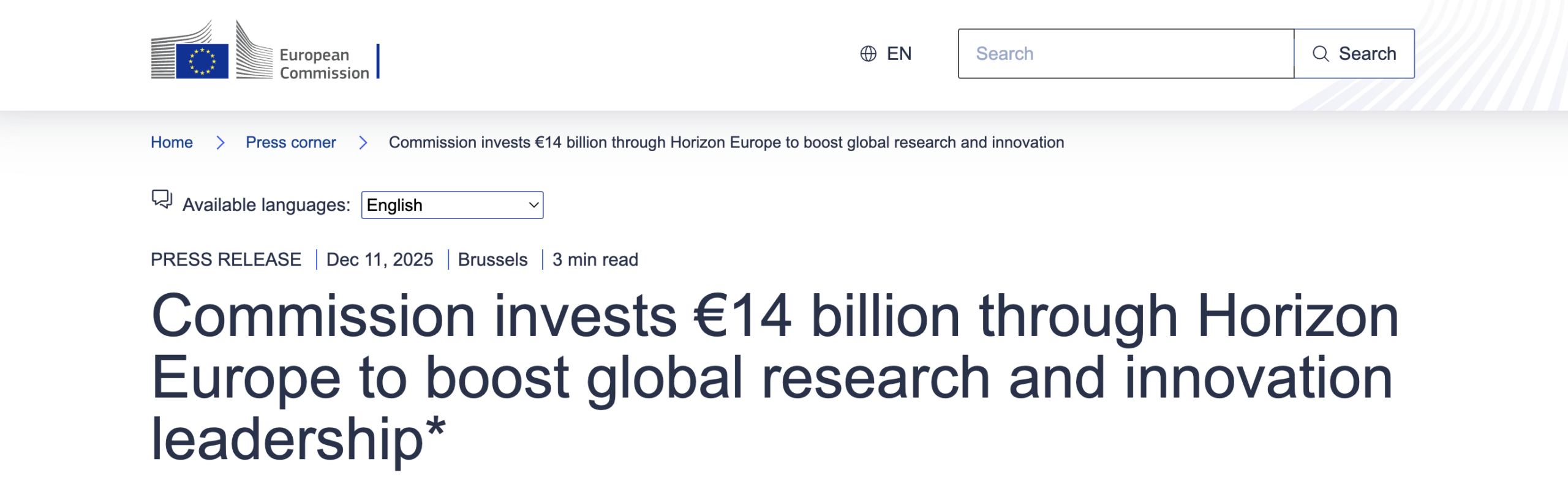 The European Commission has approved the new Horizon Europe work programme for 2026–2027. This programme represents the final stage of the seven-year cycle. Its total budget amounts to €14 billion. The EU will direct these funds towards accelerating research and innovation across Europe.